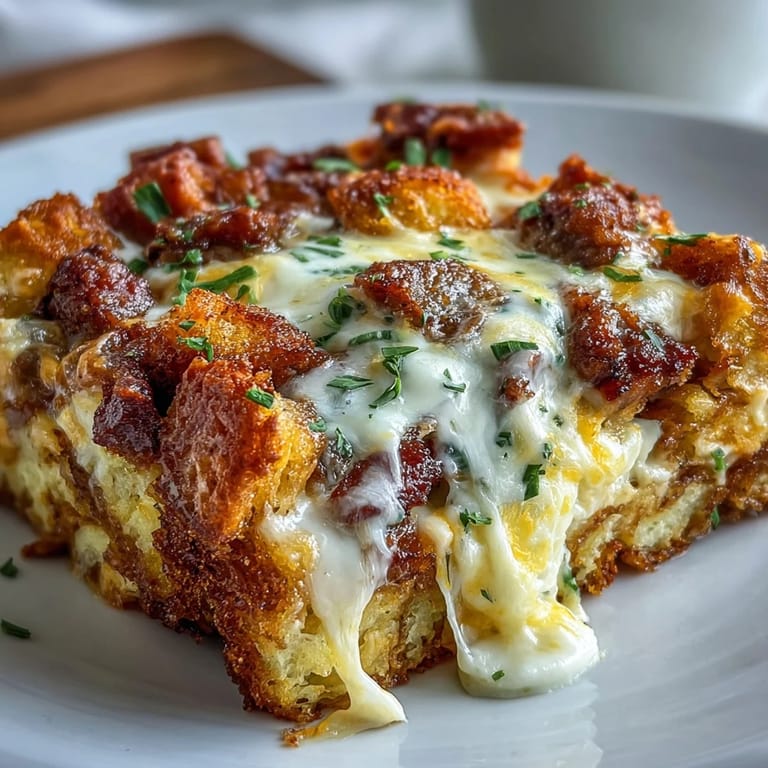 Save This casserole offers both convenience and flavor, making it a go-to recipe in many households. The combination of spices and fresh parsley adds a subtle brightness while the creamy milk and eggs hold everything together in a satisfying way. Whether served fresh from the oven or reheated, it remains a delightful start to the day.