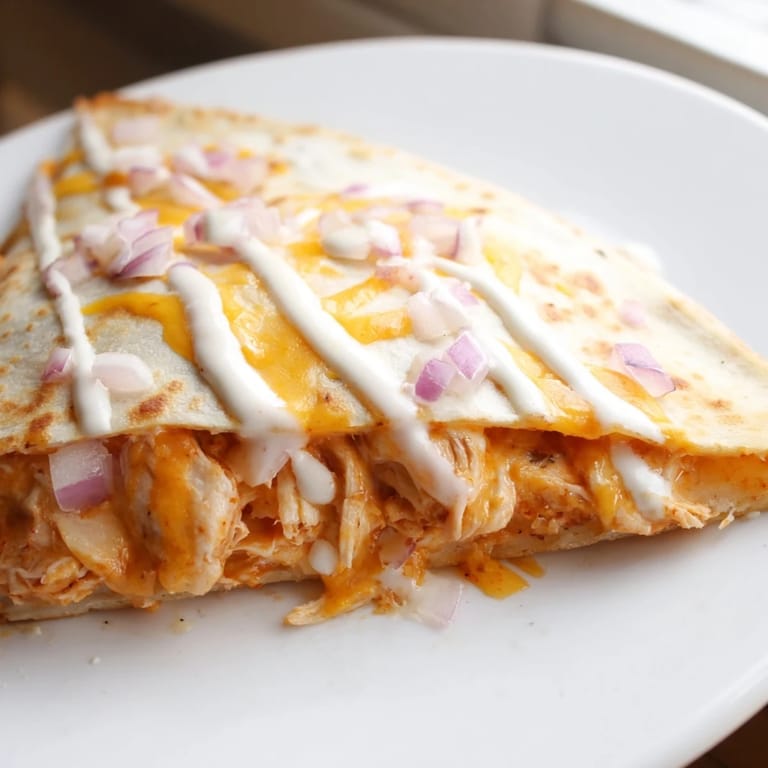 Save My roommate burst through the kitchen door on a Sunday afternoon, arms full of takeout containers, and declared that we absolutely had to recreate the buffalo chicken quesadillas from the dive bar down the street. I was skeptical—how hard could it be?—but twenty minutes later, golden-brown triangles were sizzling in my skillet, and I realized the secret wasn't fancy technique but the ratio of tangy sauce to melted cheese pulling everything together. Now these are my go-to when friends show up unexpectedly or when I need something that tastes way more impressive than the effort it requires.