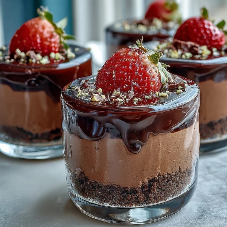 Save These cheesecake cups combine smooth, creamy textures with the satisfying crunch of a chocolate biscuit base. The ganache topping adds an elegant finish that elevates this simple dessert into a decadent delight, while the fresh strawberries bring brightness and juiciness to every bite.