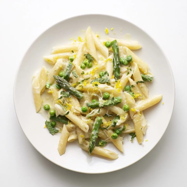 Save Last spring I found myself drowning in market vegetables after getting too excited at the farmers market. I threw this pasta together on a Tuesday night when I needed something fast but still special enough to feel like a treat. The way the bright green vegetables pop against that creamy sauce makes everyone think you spent way more time on it than you actually did.