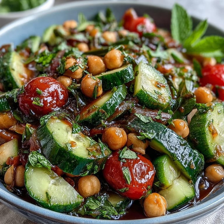 Save My friend texted me at noon asking what to bring to a potluck, and I realized I'd been craving something bright and uncomplicated all week. This cucumber chickpea salad came together while I was still in my kitchen clothes, no fancy equipment needed. The lemon hit different that day—sharp and clean, cutting through the richness of the olive oil like it was exactly what my body had been asking for. I packed it in a container, tasted a forkful before sealing it shut, and knew I'd be making it again by next Tuesday.