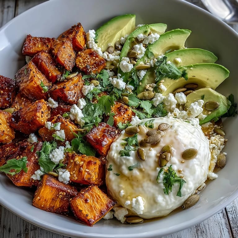 This bowl is genuinely flexible despite its simplicity, and that's partly why I keep coming back to it. You can add quinoa for extra substance, swap in Greek yogurt if cottage cheese isn't your thing, or throw on some grilled chicken if you want more protein. The core magic—crispy roasted sweet potatoes with a spicy-sweet finish—stays the same, but everything else is negotiable.