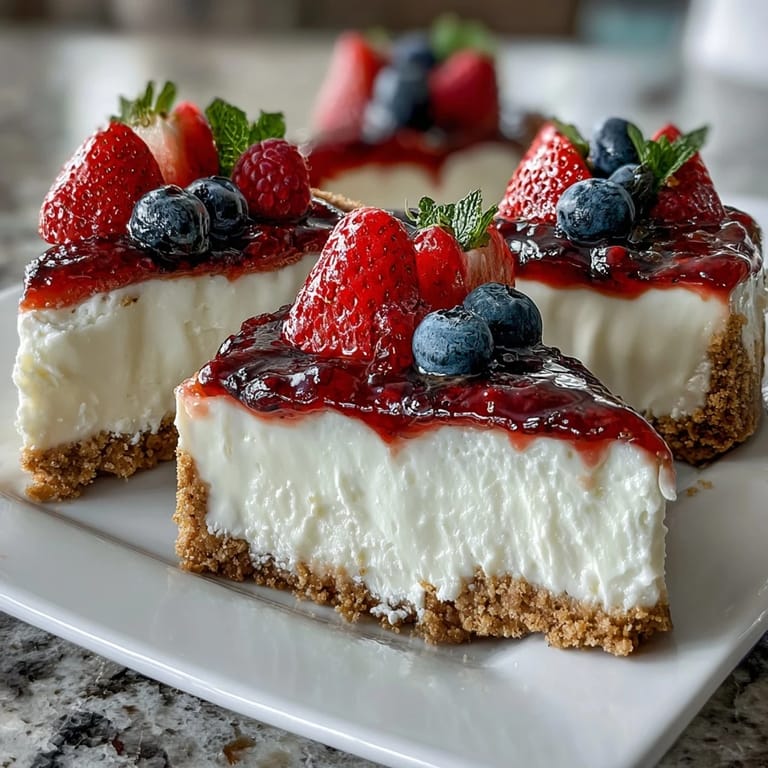 Save There's something about assembling a dessert that looks like the flag that makes you feel patriotic in the most delicious way. I stumbled onto this no-bake cheesecake idea during a sweltering July afternoon when my oven was the last place I wanted to be, and honestly, the filling came together so smoothly that I kept tasting it just to make sure I hadn't messed up. My neighbor knocked on the door asking what smelled so good, and when I showed her the ruby berries arranged in stripes across creamy white filling, she actually gasped. It's become the dessert I bring to every summer gathering now, partly because it tastes incredible, but mostly because people remember it.