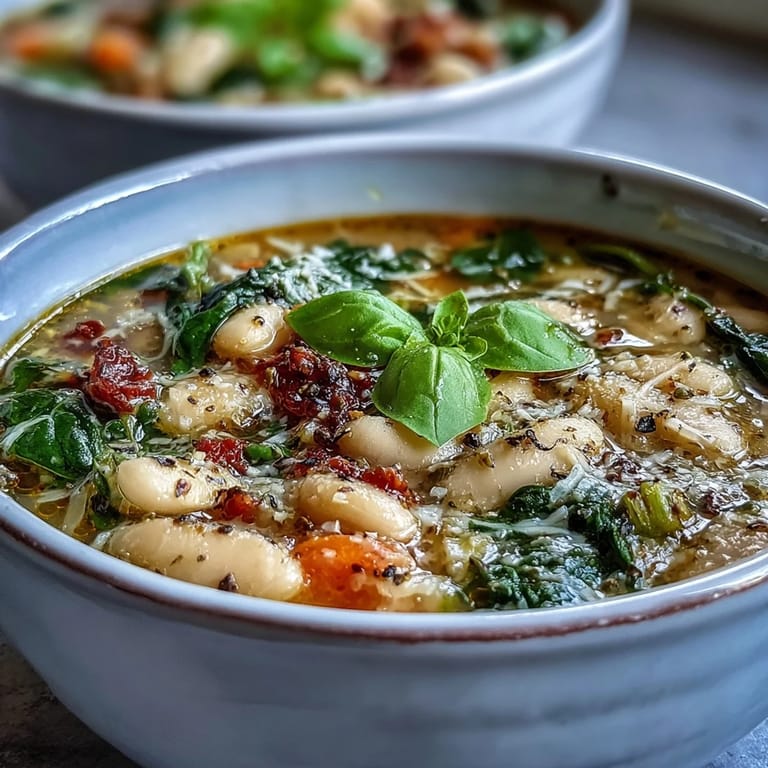 Save This Tuscan soup transforms pantry staples into a nourishing bowl of warmth. The gentle simmering allows flavors to meld beautifully while preserving the freshness of the spinach added at the end. It's a go-to for busy days when wholesome comfort food is just what you need.