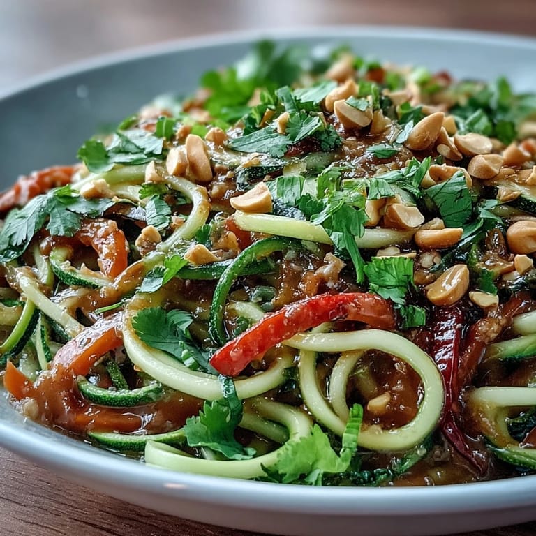 To keep the zucchini noodles from becoming soggy, avoid overcooking and serve the dish immediately after preparation. Using a spiralizer or julienne peeler works best to achieve the perfect noodle texture. Freshly grated ginger and minced garlic enhance the flavor, so don’t skip these ingredients. Adjust the peanut sauce consistency with warm water to get it just right for tossing.